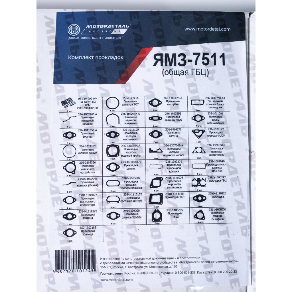 | 6 | 236-1002314-Б Прокладка картера маховика | 1 шт. |
